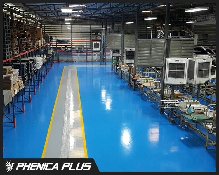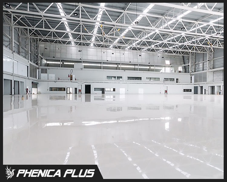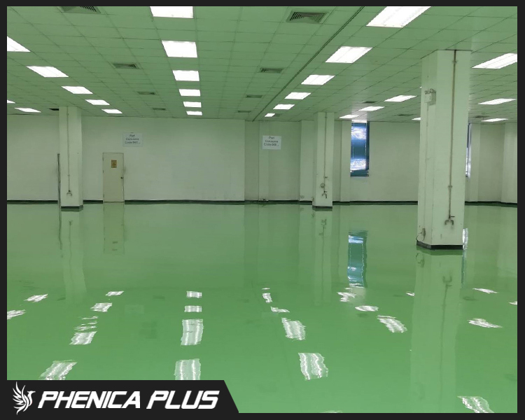 ระบบเคลือบพื้นเพื่อความคงทน ป้องกันสารเคมีได้ หลายชนิด พื้นผิวเรียบ ไม่มีรอยต่อ ให้ความเงางามสูง