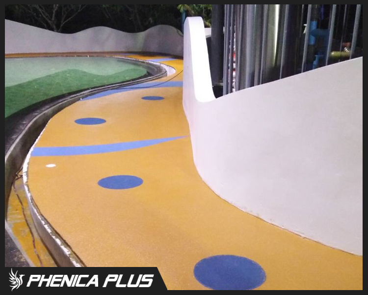 ระบบเคลือบพื้นไร้รอยต่อ มีลักษณะของเม็ดทรายย้อมสี